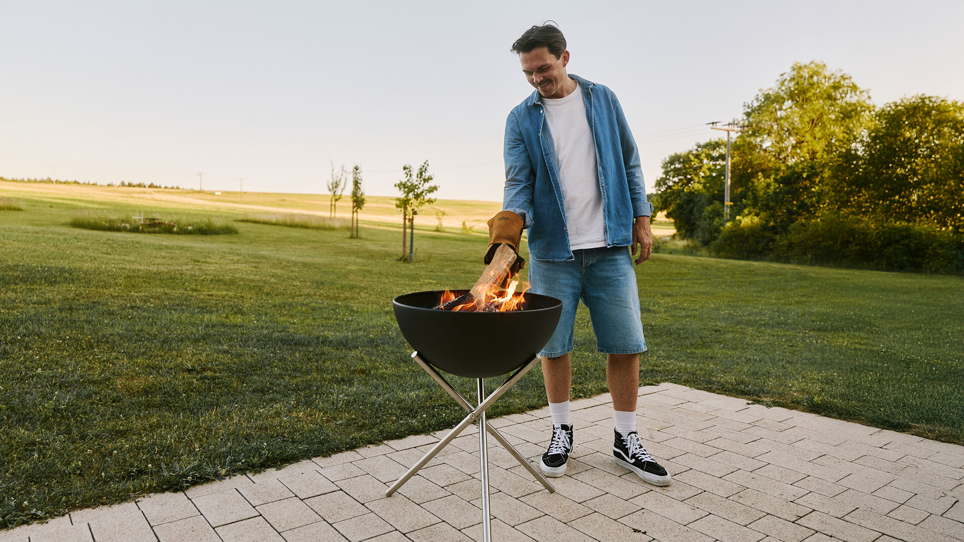 Die schwarze Stahlhalbkugel ruht sicher auf dem niedrigen Sternfuß oder dem hüfthohen Dreibein. In waagerechter Position bietet die BOWL Platz für zahlreiche Freunde. Neigst du die Halbkugel, schützt du die Flammen vor Wind und lenkst die Wärme gezielt dorthin, wo sie gebraucht wird.