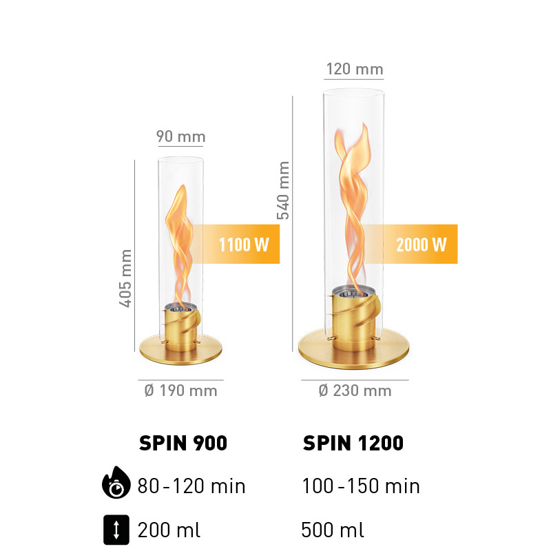 - SPIN 900 darf nur mit Bioethanol Flüssig-Brennstoff betrieben werden.