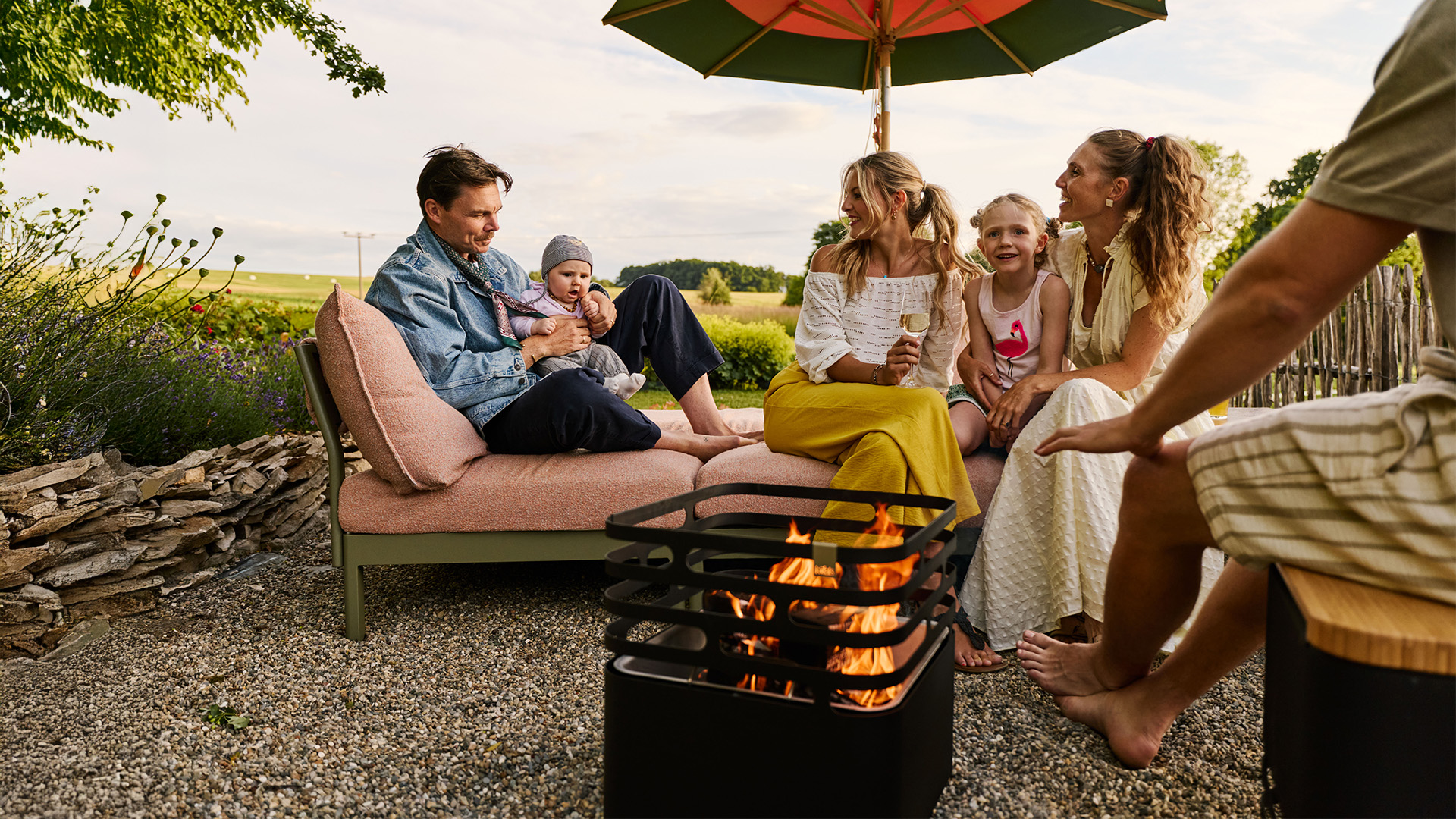 This makes your fire evenings even more enjoyable – whether you're grilling on the height-adjustable grill grid, cooking on the plancha or preparing delicious flame-cooked salmon over the fire.