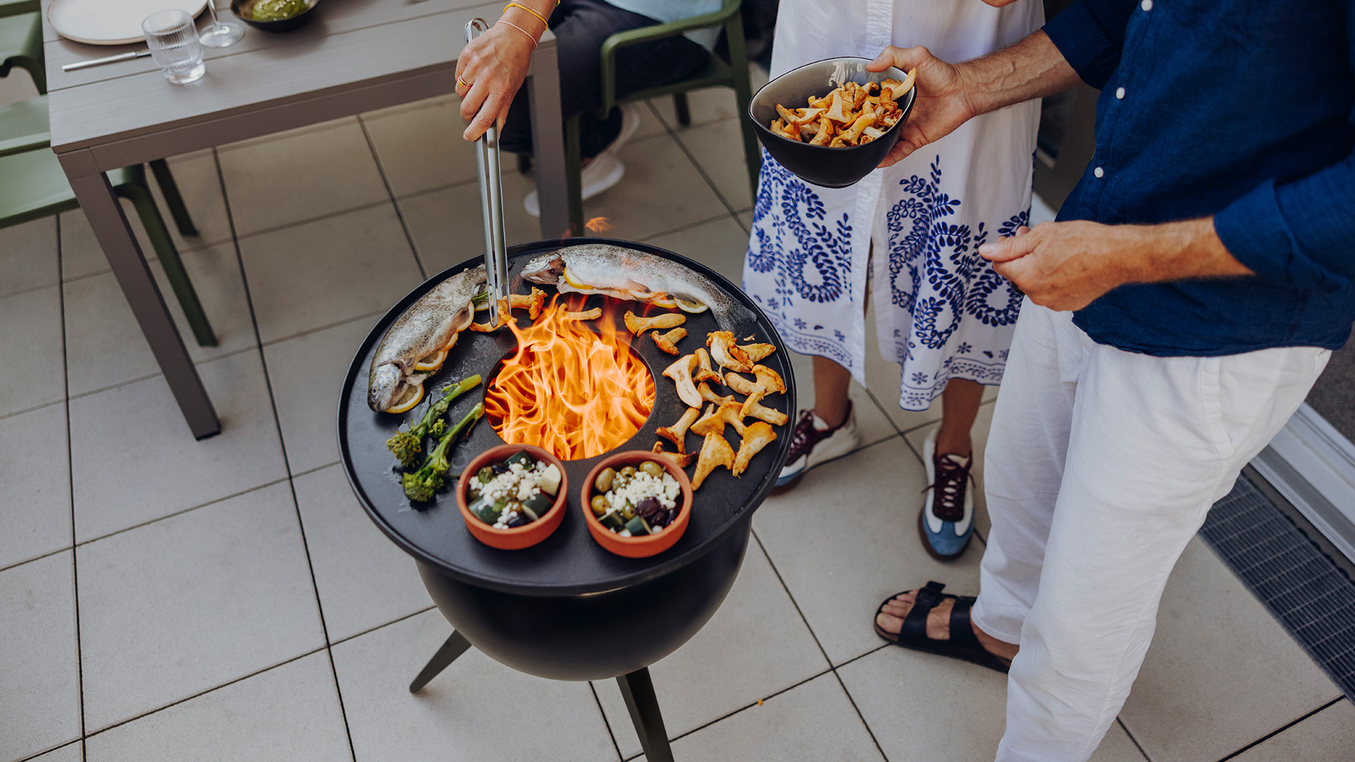 For culinary highlights, MOON can be transformed into a full cooking and grilling station with the matching plancha. The closed plancha ring provides generous space for all kinds of dishes, which can be cooked with minimal fat thanks to the excellent heat retention and non-stick surface of the cast-iron plate.